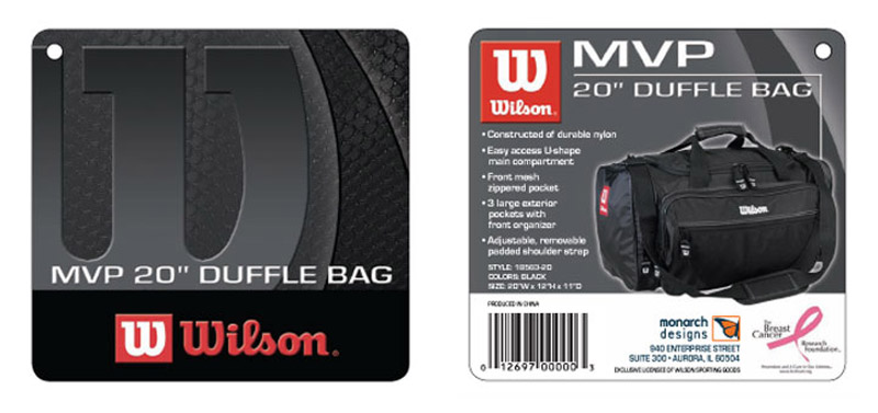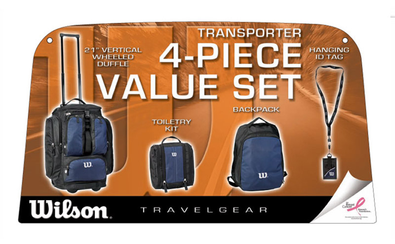 Wilson branded duffle bag hangtags and 4 pc. travel set billboard