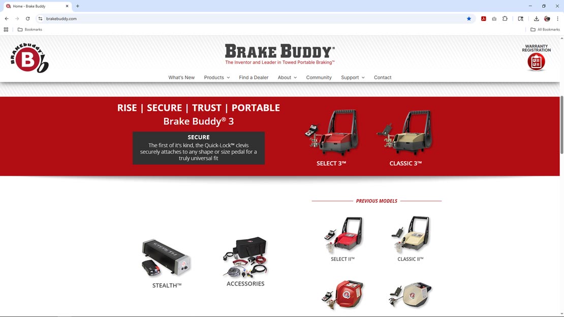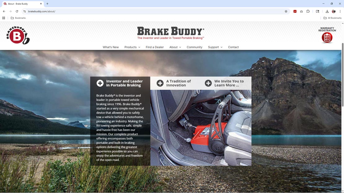 Travel themed marketing website created for the inventor of portable towed vehicle braking systems for recreational vehicles